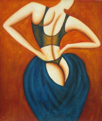 Popis obrazu: Ručně malovaný obraz olejovými barvami, vypnutý v dřevěném rámu. Na obraze je namalována žena ze zadu tančící se šátkem.